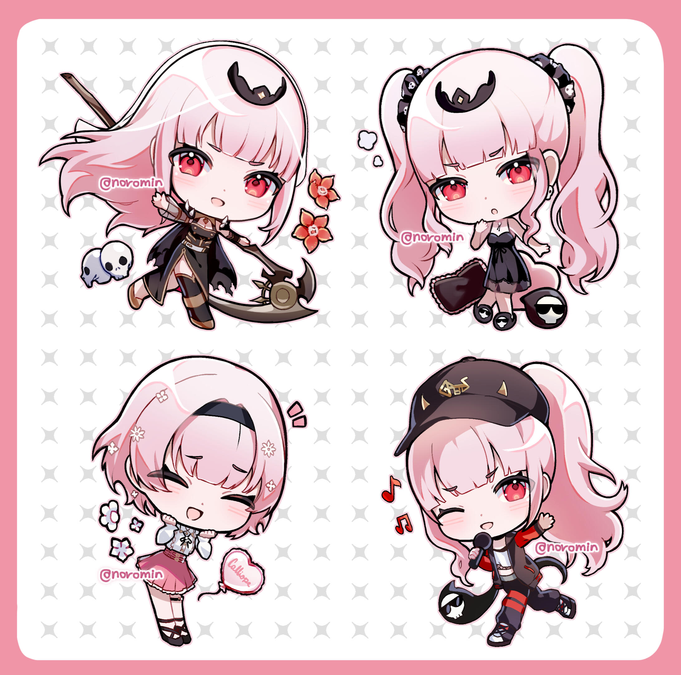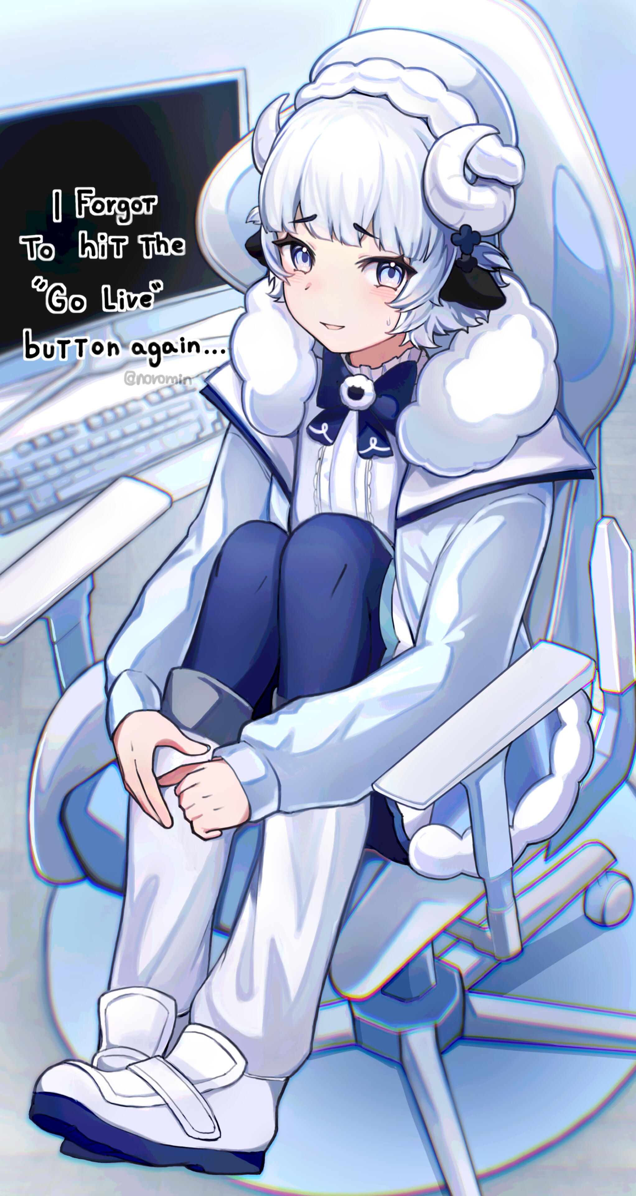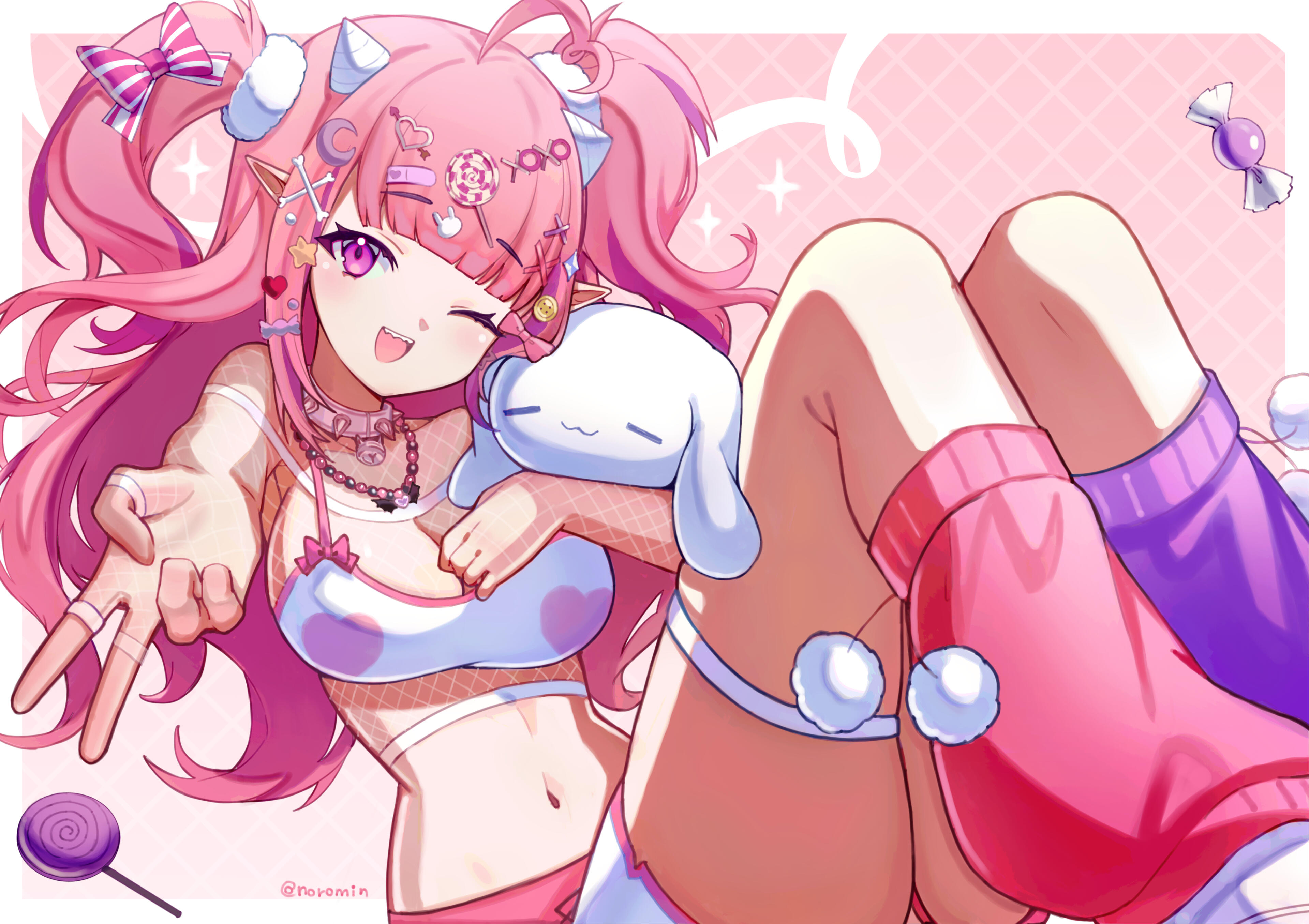 Nice to meet you! I'm Noromin, a Chilean anime illustrator and Live2D modeller.I enjoy my time streaming as a Vtuber on Twitch while i draw, sing and play games in company of my community, the Norowools! Feel free to join us the next time ~!