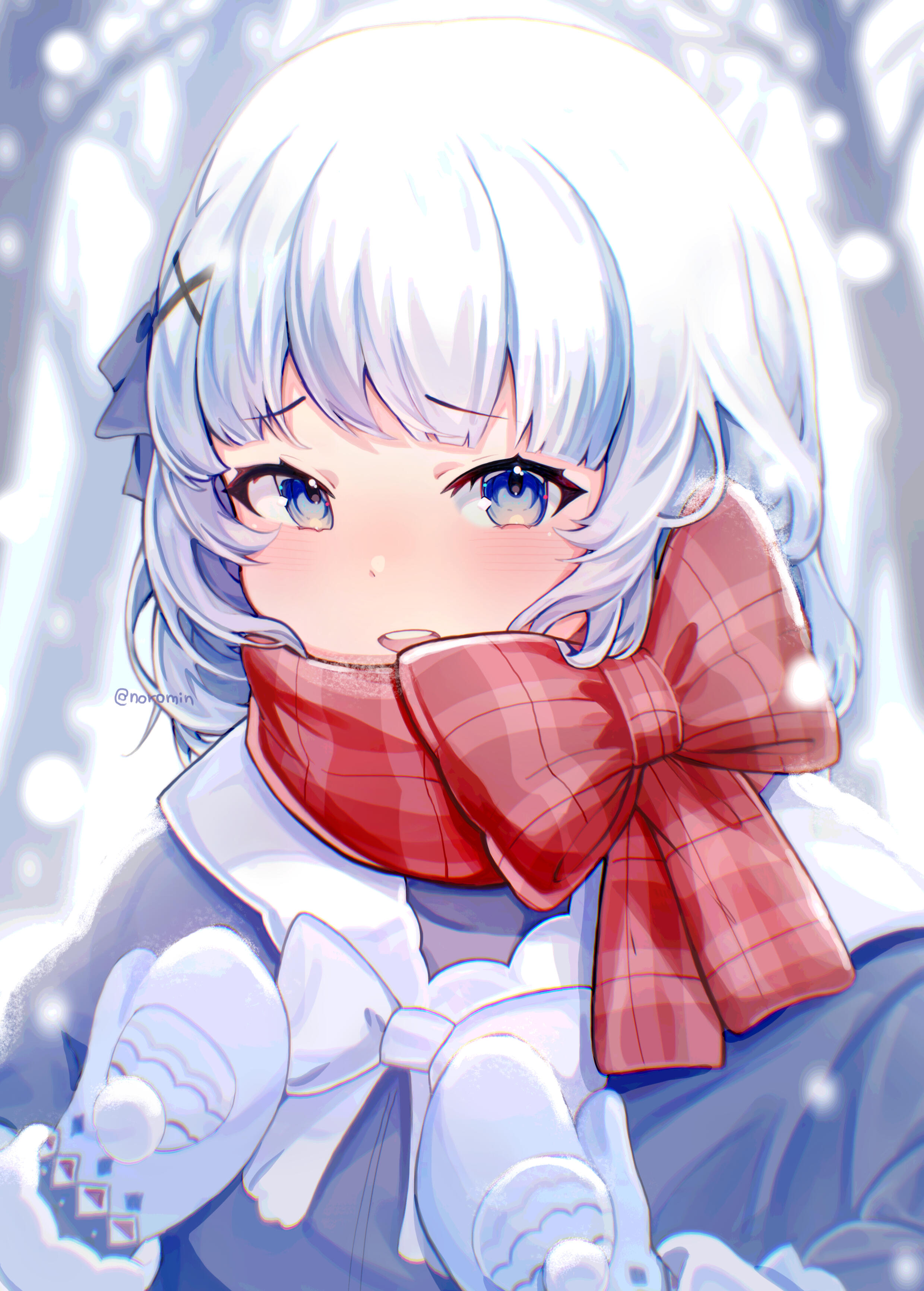 Clients can post their finished pieces online, as long as the artist is credited for the work. Only the artist main online handle (Noromin) is required to be mentioned and direct links are optional.